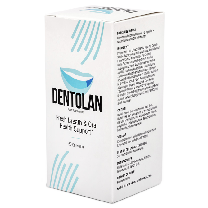 Dentolan è un moderno integratore completamente naturale, i cui ingredienti aiutano ad affrontare il problema dell'alito cattivo, indipendentemente dalla sua causa. La ricca formula dell'integratore va alla radice del problema, donando un effetto di freschezza a lunga durata, anche dopo aver interrotto l'uso del prodotto.